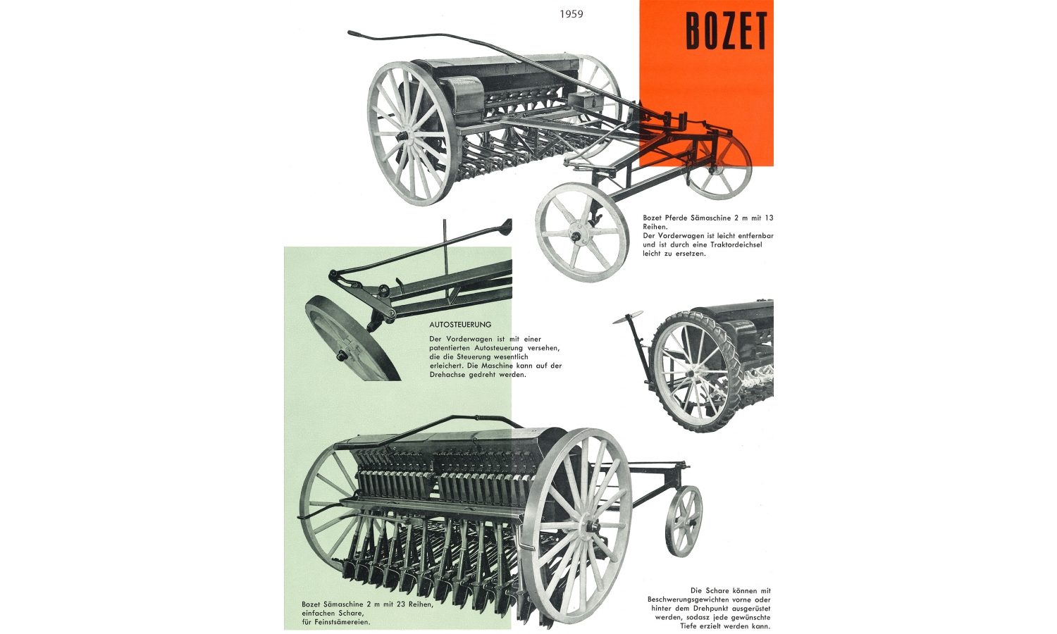 Über die Firma Bozet ist nur wenig dokumentiert. Sie war wohl ein regionaler Hersteller in Frankreich, der sich auf Geräte für die Aussaat spezialisierte sowie für Zubehör für die Bodenbearbeitung. Vermutlich war das Unternehmen in den 1950er-Jahren und frühen 1960er-Jahren aktiv.