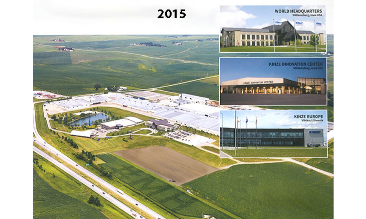 1976 zog Kinze in ein neues Werk in Williamsburg, Iowa. Die Produktpalette wuchs stetig. Im Jahr 2013 eröffnete Kinze eine Produktionsstätte in Vilnius, Litauen, um der wachsenden Nachfrage nach seinen Produkten in Mittel- und Osteuropa gerecht zu werden.